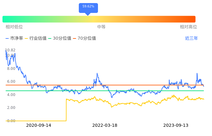 天利科技当前市净率PB为5.20,在所属的IT服务中,市净率PB排90,前五名分别为龙宇股份市净率0.93、城地香江市净率1.14、新智认知市净率1.24、东软集团市净率1.30、华宇软件市净率1.37。天利科技当前市净率PB为5.20,超过近3年59.62%的历史数据。
