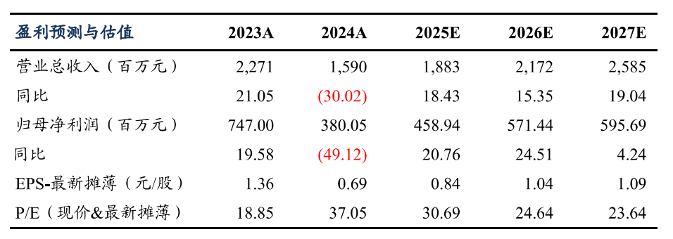 公司业绩符合市场预期,我们维持先前的预期,预计公司2025-2027年归母净利润分别为4.59/5.71/5.96亿元,对应PE分别为31/25/24倍,维持“买入”评级。