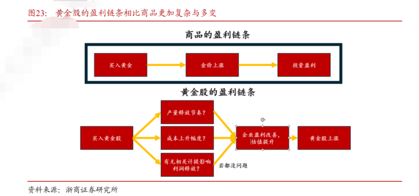 黄金与黄金股相比,黄金股盈利的模式更为复杂,传导的链条也更为复杂。因此表面上虽然都是受金价利好,但传导链条差距较大,导致二者走势存在一定的分歧。黄金股目前仍处低位,黄金股的利润释放周期才刚刚开始。