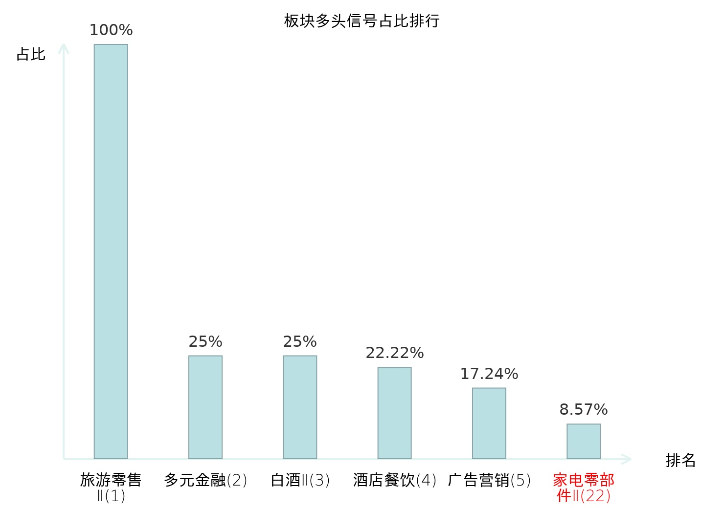 从主力宝信号数据分析,汉宇集团所属的家电零部件Ⅱ板块中共有3只股票发出主力多头信号,主力多头信号占比在全行业中排名第22位,较昨日上升18位。较高的排名表明主力对于该板块整体看多意愿较强,此次排名上升反映了主力对该板块态度的进一步积极。全市场所有行业板块中主力多头信号占比排名中,旅游零售Ⅱ板块位居第一。旅游零售Ⅱ板块名次提升最快,较昨日上升130位。这些变动揭示了不同行业间主力资金动向的趋势,为投资者提供了关于市场情绪和潜在投资机会的重要线索。