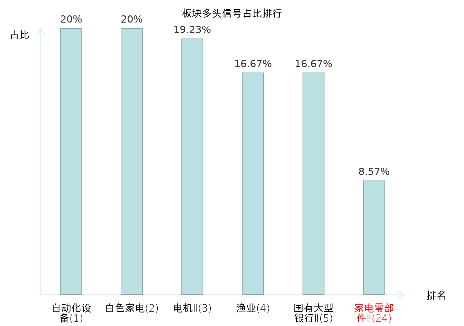 从主力宝信号数据分析,汉宇集团所属的家电零部件Ⅱ板块中共3只股票发出主力多头信号,主力多头信号占比在全行业中排名第24位,较昨日上升49位;较高的排名表明主力对于该板块整体看多意愿较强,此次排名大幅上升可能反映了主力对该板块态度的明显强化;全市场所有行业板块中主力多头信号占比排名中,自动化设备板块位居第一;渔业板块名次提升最快,较昨日上升118位;这些变动揭示了不同行业间主力资金动向的结构性调整,为投资者判断市场情绪分化与潜在关注方向提供了客观依据。