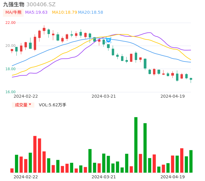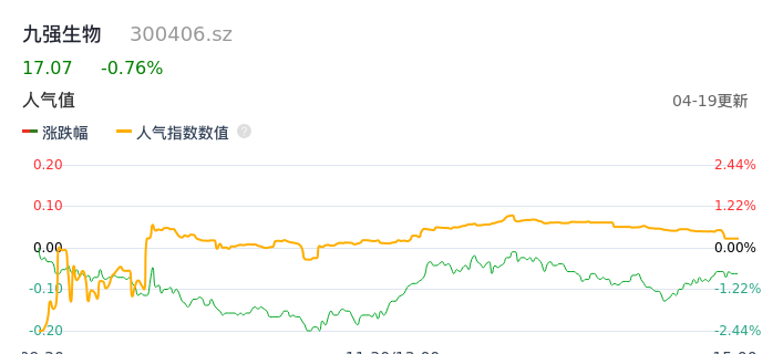 04月19日,九强生物收报17.07,股价涨幅-0.76%,成交金额9565.58万元,换手率1.33%。