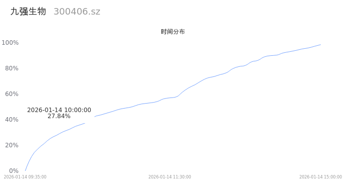 300406九强生物2026年01月14日成交28.88万手,成交金额4.35亿,相较昨日缩量11.96万手,换手率6.80%,成交清淡。