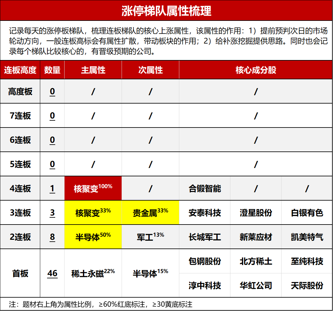 点评:可控核聚变昨天修复的力度还是可以的,走的跟我们昨天早上盘前锦囊预判的差不多,‌合锻智能换手板,永鼎股份大长腿,王子新材首板,中洲特材也有20%+的弹性,慢慢走主主线的特质了。今天会议才开始,盘中还会有相关的语料新闻出来,所以依旧可以继续保持跟踪关注,积极把握低吸机会!还有相对低位股权线的中油资本百利电气这种