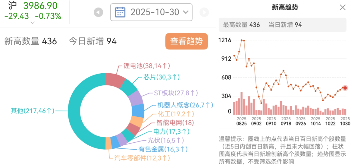 从百日新高去看,目前是轮动行情,没有绝对的主线!在锂电池>芯片>ST板块>机器人,科技二波冲击前高,锂电(固态)成为第一