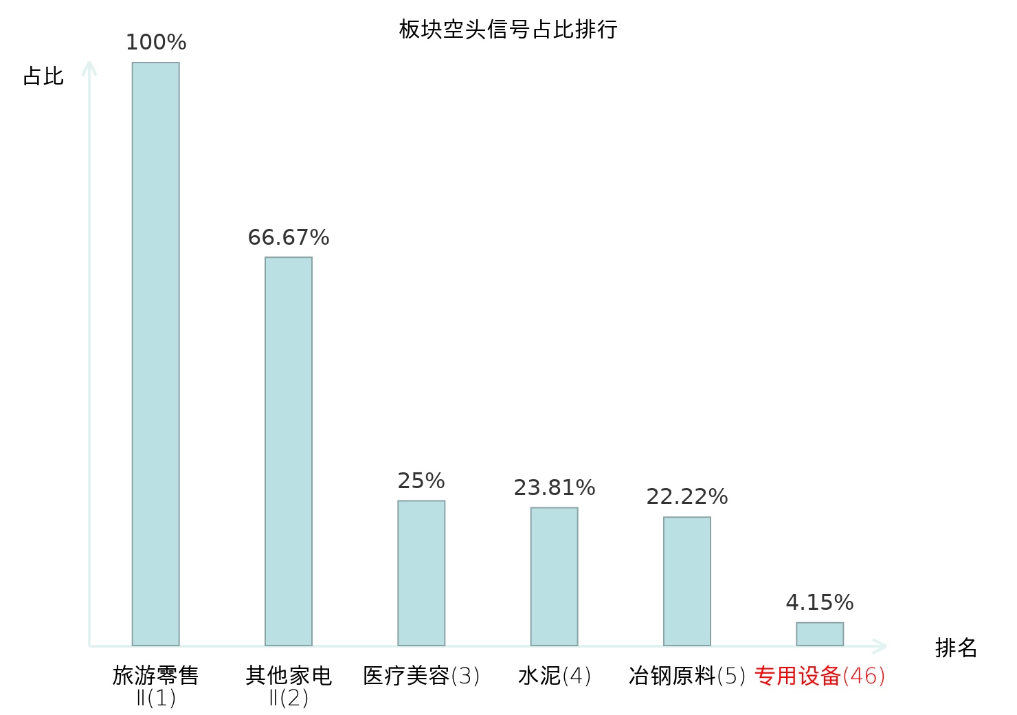全市场所有行业板块中主力空头信号占比排名中,旅游零售Ⅱ板块位居第一。电机Ⅱ板块名次提升最快,较昨日上升113位。