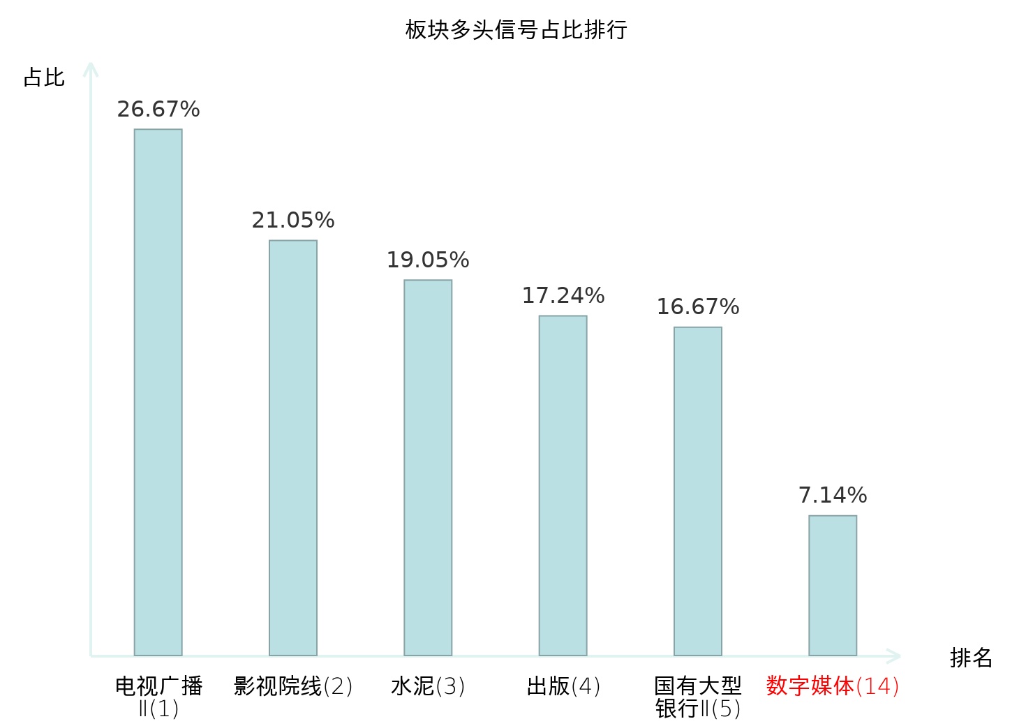 从主力宝信号数据分析,芒果超媒所属的数字媒体板块中共1只股票发出主力多头信号,主力多头信号占比在全行业中排名第14位,较昨日上升1位。较高的排名表明主力对于该板块当日整体看多意愿较强,此次排名小幅上升可能反映主力对该板块态度趋于积极;全市场所有行业板块中主力多头信号占比排名中,电视广播Ⅱ板块位居第一;国有大型银行Ⅱ板块名次提升最快,较昨日上升118位。这些变动揭示了不同行业间主力资金动向的结构性差异,为投资者评估板块相对吸引力和潜在趋势提供了客观依据。