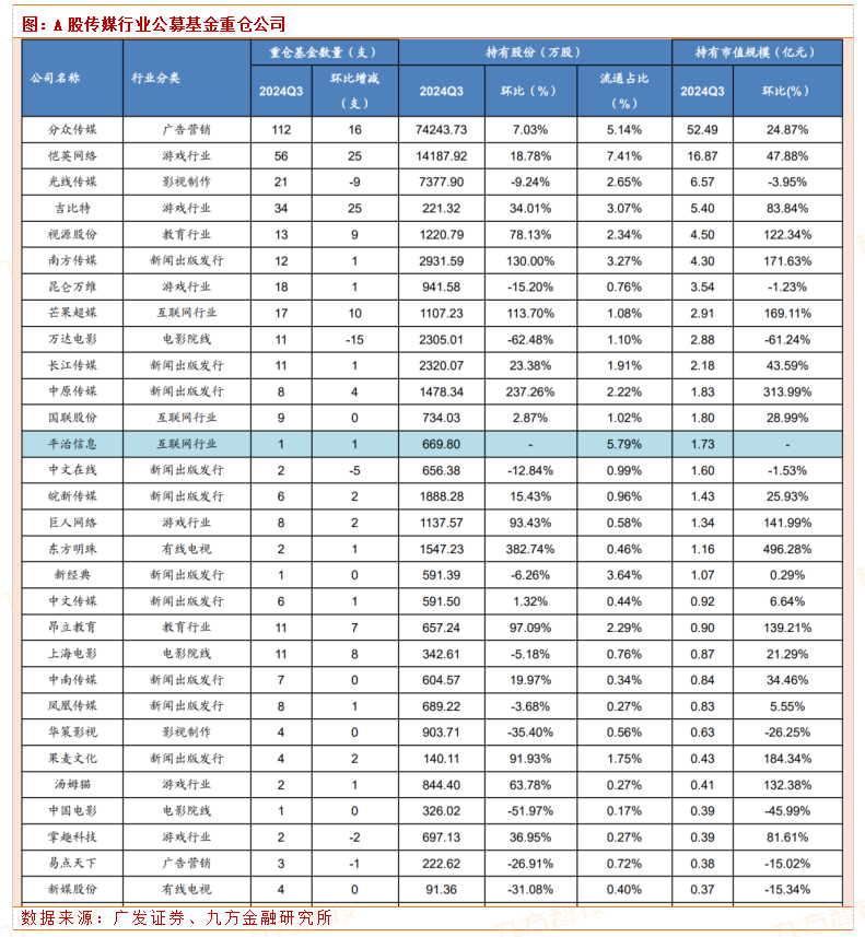 20241027-广发证券-24Q3基金持仓-A股传媒重仓配置比例提升,游戏、营销持仓占比环比提升