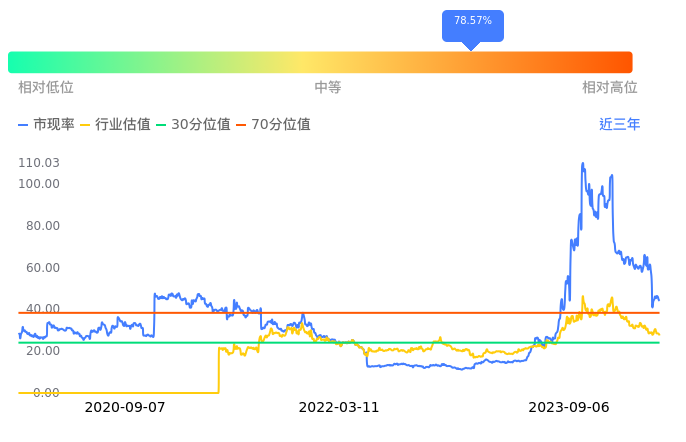 2023年09月07日,昆仑万维下跌2.23%收于33.80,今日成交金额19.39亿元。下文将从市盈率PETTM、市净率PB、市现率3个角度去分析公司估值情况。