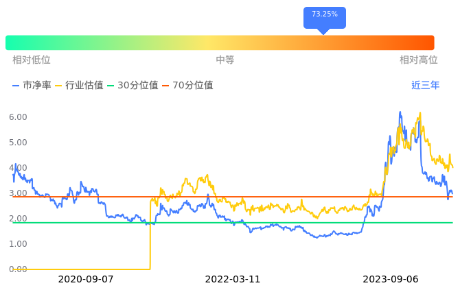 昆仑万维当前市净率PB为2.85,在所属的游戏中,市净率PB排8,前五名分别为凯撒文化市净率1.04、世纪华通市净率1.52、浙数文化市净率2.11、巨人网络市净率2.13、宝通科技市净率2.29。昆仑万维当前市净率PB为2.85,超过近3年73.25%的历史数据。