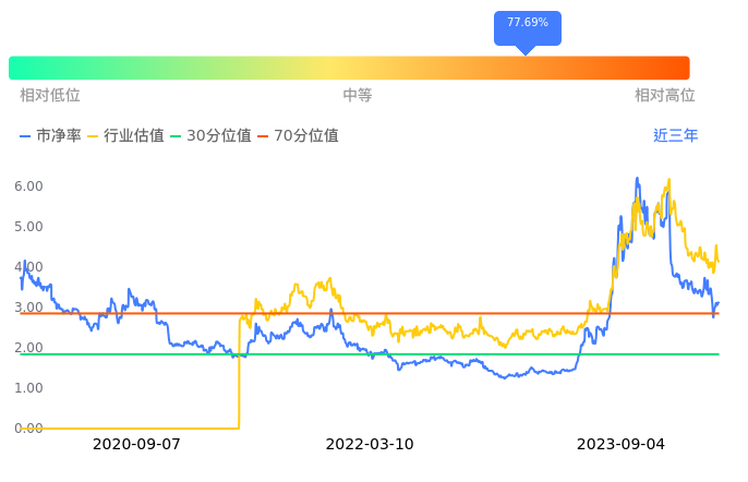 昆仑万维当前市净率PB为3.10,在所属的游戏中,市净率PB排10,前五名分别为凯撒文化市净率1.09、世纪华通市净率1.59、浙数文化市净率2.25、巨人网络市净率2.27、宝通科技市净率2.31。昆仑万维当前市净率PB为3.10,超过近3年77.69%的历史数据。