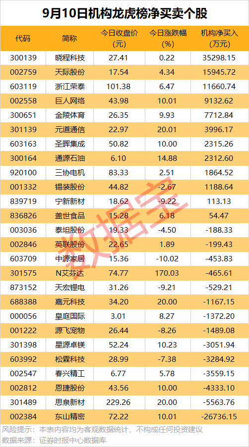 龙虎榜揭秘:10股机构净买入均超千万元