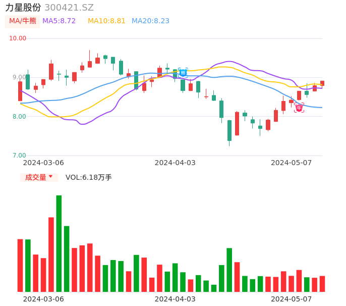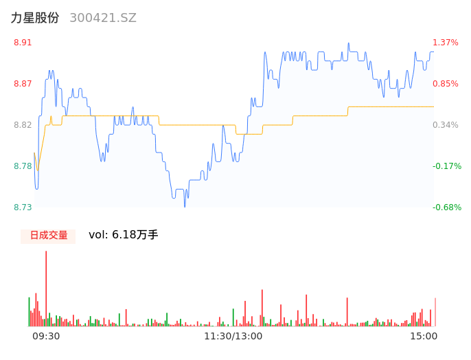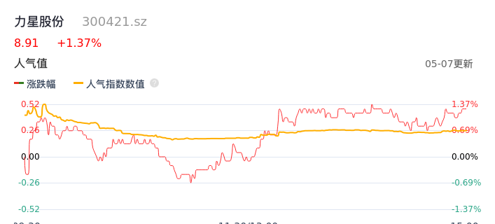 05月07日,力星股份收报8.91,股价涨幅1.37%,成交金额5466.44万元,换手率2.68%。