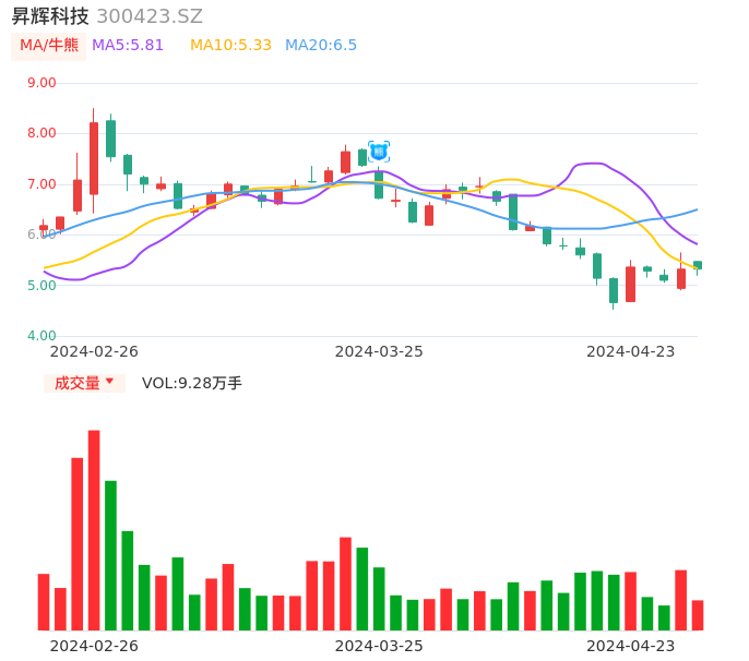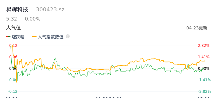 04月23日,昇辉科技收报5.32,股价涨幅0.00%,成交金额4934.00万元,换手率2.86%。