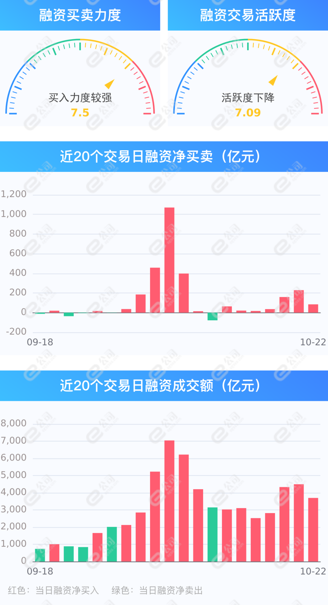 10月22日,市场融资交易额为3694.84亿元,占A股成交额19.32%。其中融资买入额1889.75亿元。