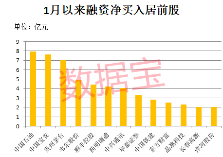 融资净买入额靠前的还有中国宝安、贵州茅台、韦尔股份、顺丰控股、药明康德等。