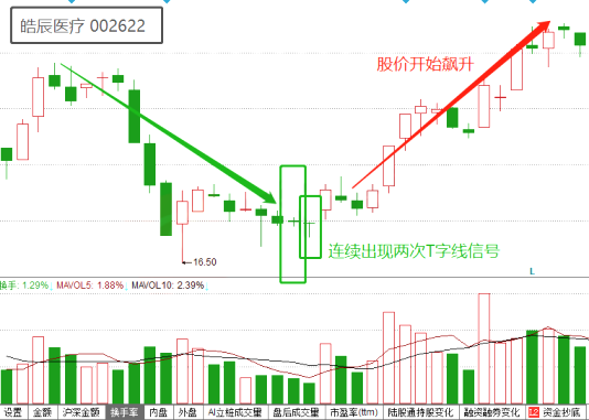 如下图所示,皓辰医疗在3月10日和3月11日连续2天出现T字线形态,出现该形态之后,市场筑底企稳信号显现,短期迎来操作机会,可积极关注后市的机会。