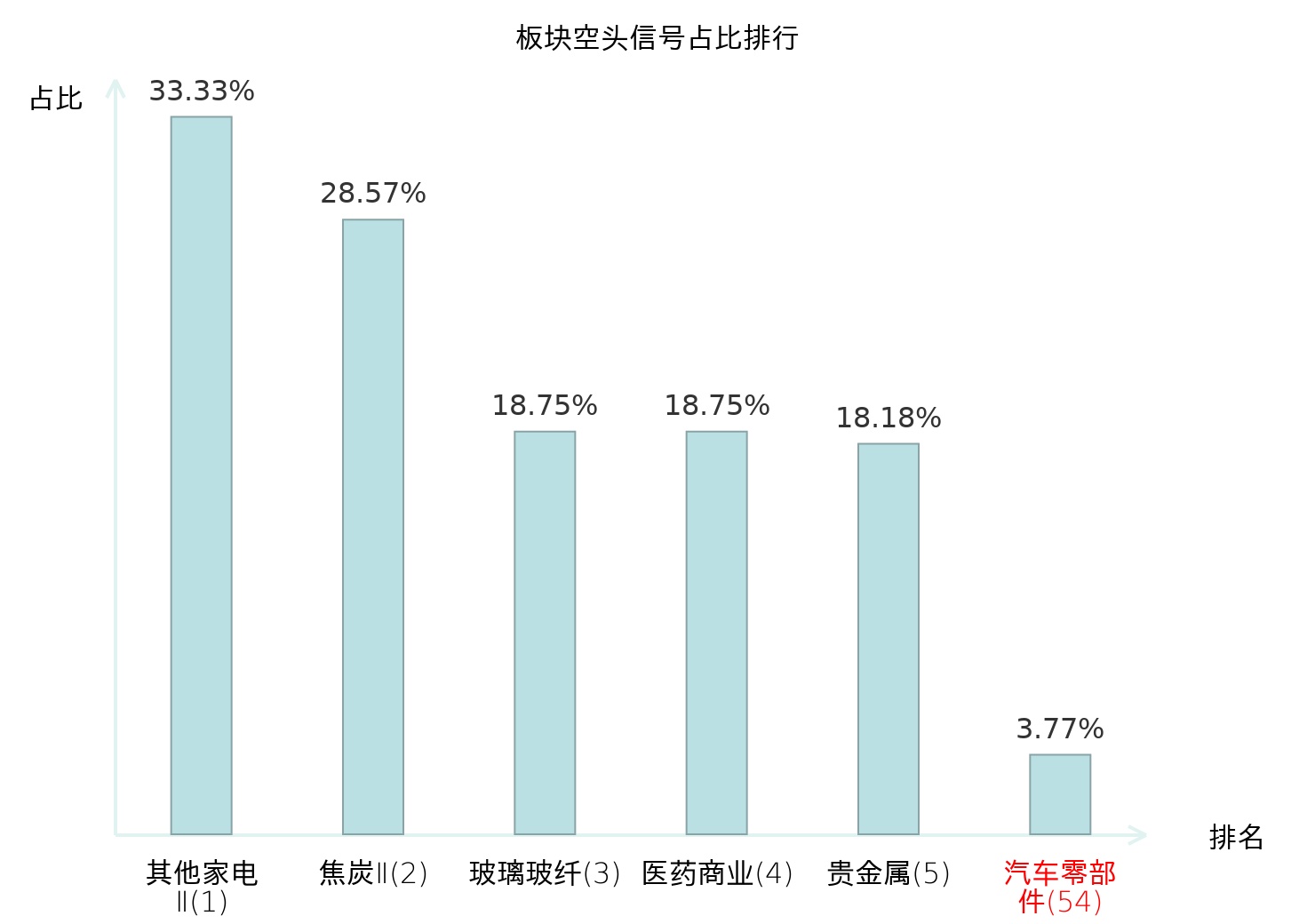 全市场所有行业板块中主力空头信号占比排名中,其他家电Ⅱ板块位居第一。工业金属板块名次提升最快,较昨日上升114位。