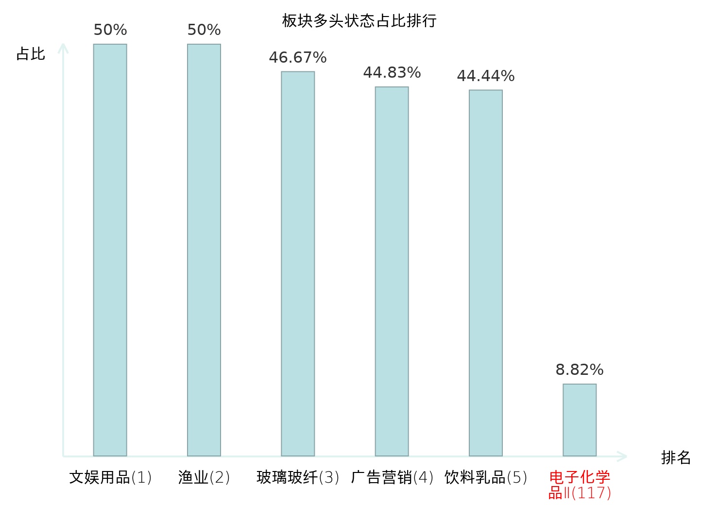 从主力宝信号数据分析,强力新材所属的电子化学品Ⅱ板块中共3只股票处于主力多头状态,主力多头状态占比在全行业中排名第117位,较昨日一致。排名越高说明主力对于板块整体看多意愿越强;全市场所有行业板块中主力多头状态占比排名中,文娱用品板块位居第一;饮料乳品板块名次提升最快,较昨日上升59位。这些变动揭示了不同行业间主力资金偏好的变化,有助于投资者理解当前市场的动态和趋势。