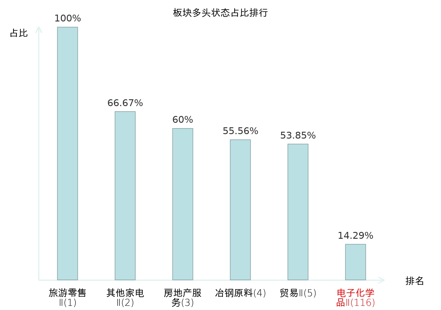 从主力宝信号数据分析,强力新材所属的电子化学品Ⅱ板块中共有5只股票处于主力多头状态,主力多头状态占比在全行业中排名第116位,较昨日下降8位。较高的排名表明主力对于该板块整体看多意愿较强,此次排名下降可能反映了主力对该板块态度的一些微调。全市场所有行业板块中,旅游零售Ⅱ板块的主力多头状态占比最高,位居第一;保险Ⅱ板块名次提升最快,较昨日上升65位。这些变动揭示了不同行业间主力资金动向的趋势,为投资者提供了关于市场情绪和潜在投资机会的重要线索。