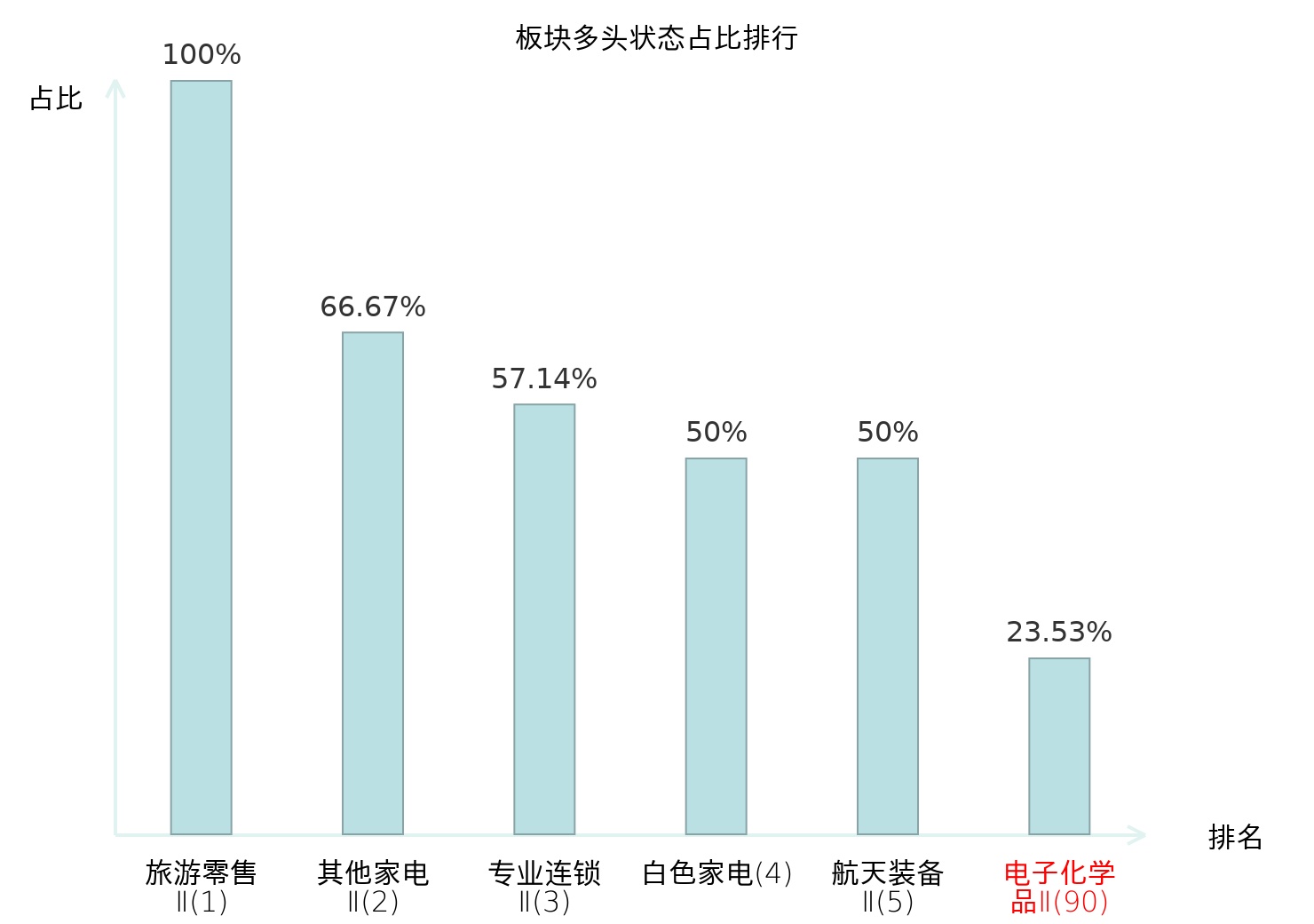 从主力宝信号数据分析,强力新材所属的电子化学品Ⅱ板块中共有8只股票处于主力多头状态,主力多头状态占比在全行业中排名第90位,较昨日下降17位。排名的下降可能反映了主力对电子化学品Ⅱ行业看多意愿的减弱,对投资者判断当前市场情绪和板块吸引力提供了重要参考。全市场所有行业板块中,旅游零售Ⅱ板块的主力多头状态占比位居第一,表明该板块当前受到主力资金的青睐。股份制银行Ⅱ板块名次提升最快,较昨日上升79位,显示出主力资金对该板块的兴趣显著增加。这些变动为投资者提供了关于市场资金动向的重要线索,有助于把握潜在的投资机会。