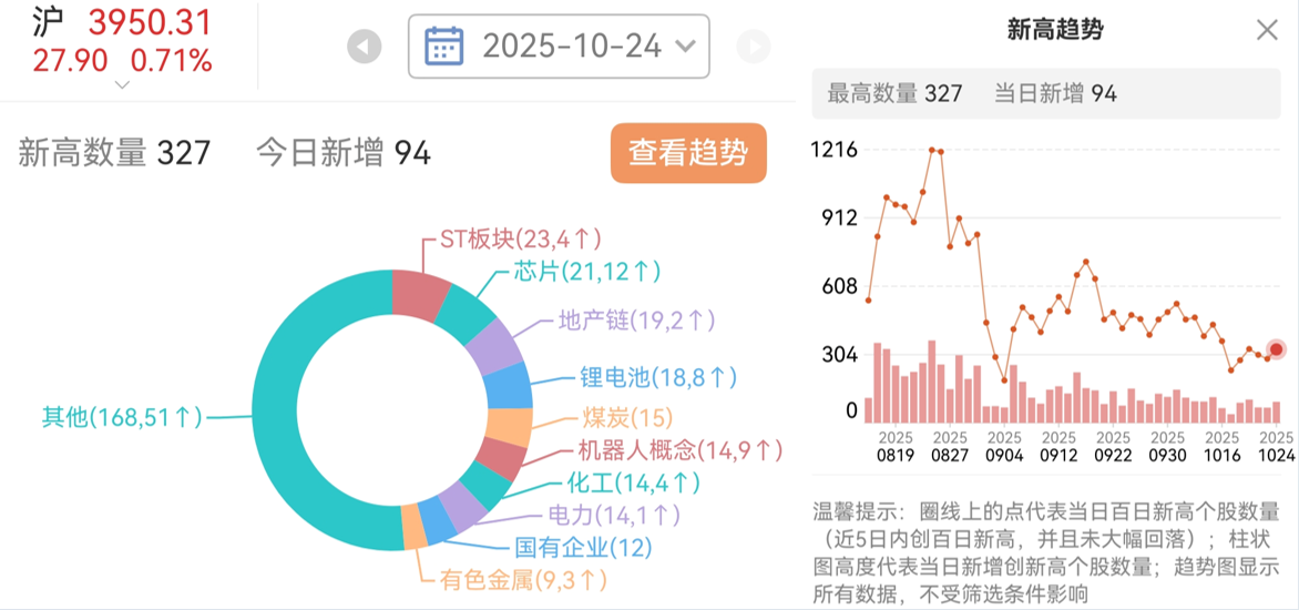 从百日新高去看,目前是轮动行情,没有绝对的主线!在ST板块>芯片>地产>锂电池,科技二波冲击前高
