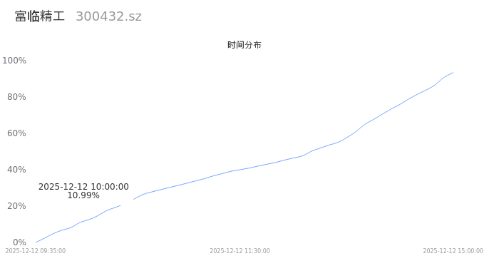 300432富临精工2025年12月12日成交82.43万手,成交金额12.81亿,相较昨日放量44.26万手,换手率4.88%,成交清淡。