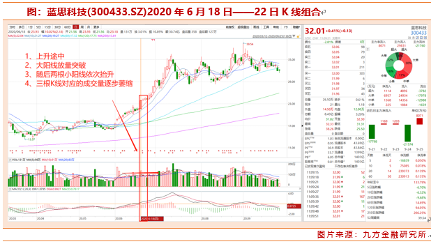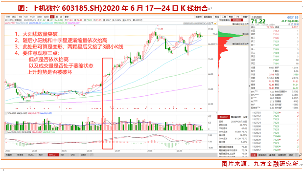 再来看第二个案例,属于变形的形态。上机数控603185.SH)2020年6月17—24日K线组合。