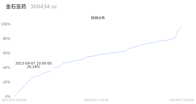 300434金石亚药2023年09月07日成交4.99万手,成交金额5747.60万元,相较昨日放量1手,换手率1.48%,成交清淡。