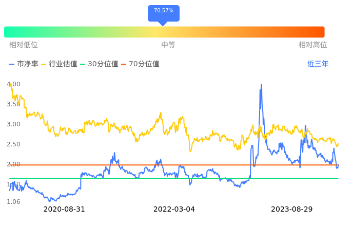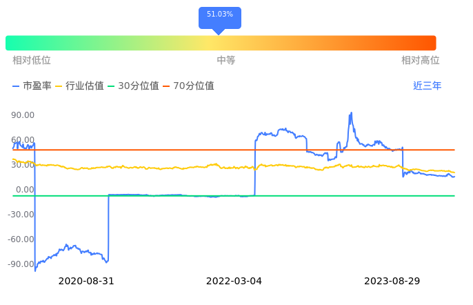 2023年08月30日,金石亚药下跌1.41%收于11.90,今日成交金额1.35亿元。下文将从市盈率PETTM、市净率PB、市现率3个角度去分析公司估值情况。