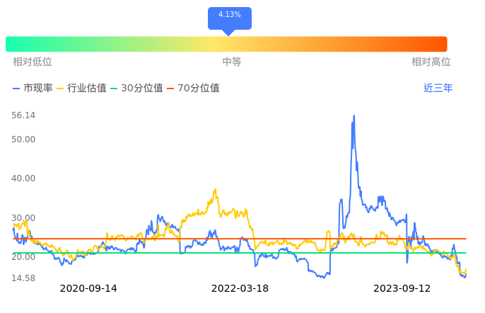 2023年09月12日,金石亚药上涨2.70%收于12.19,今日成交金额1.82亿元。下文将从市盈率PETTM、市净率PB、市现率3个角度去分析公司估值情况。