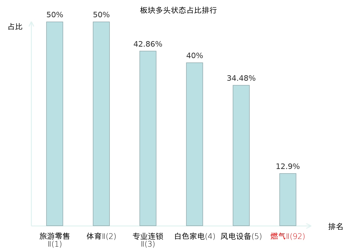 全市场所有行业板块中主力多头状态占比排名中,旅游零售Ⅱ板块位居第一。能源金属板块名次提升最快,较昨日上升50位。