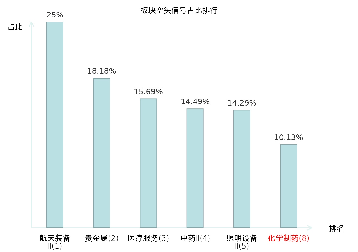 全市场所有行业板块中主力空头信号占比排名中,航天装备Ⅱ板块位居第一。物流板块名次提升最快,较昨日上升112位。