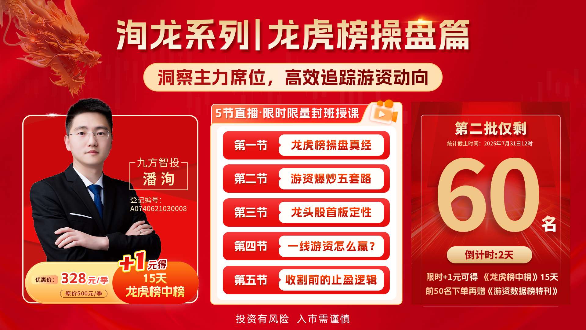 1、潘老师【限时限量】龙虎榜操盘系列课开营,错过不补,仅此一期: