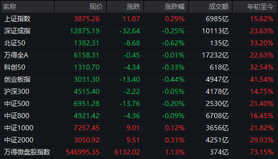 A股:截至收盘,指涨0.29%,深成指跌0.25%,创业板指跌0.44%