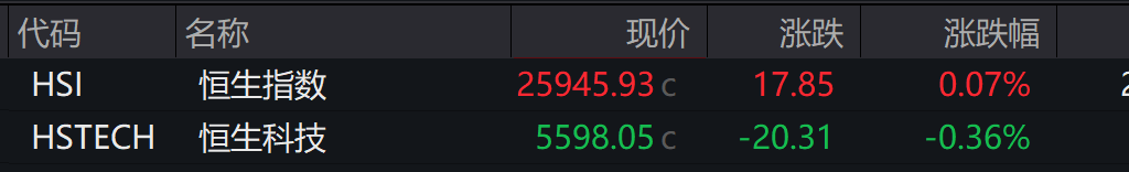 港股:截至收盘,恒指上涨0.07%,恒科指跌0.36%。