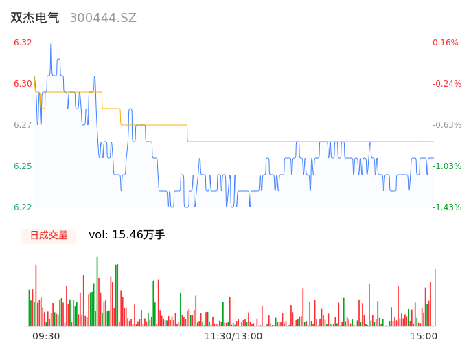 05月07日,双杰电气收报6.24,股价涨幅-1.11%,成交金额9670.68万元,换手率2.61%。