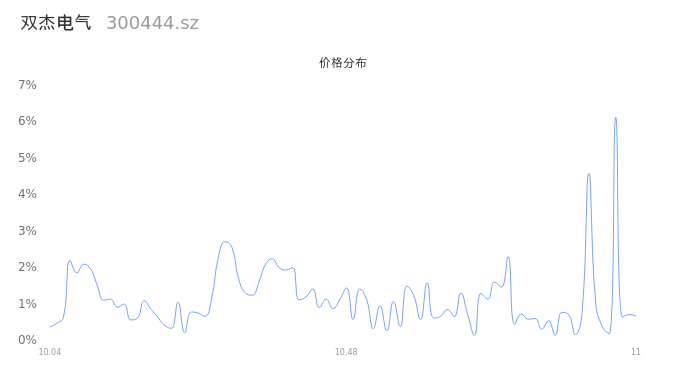 300444双杰电气2025年11月06日成交277.29万手,成交金额29.02亿,相较昨日放量58.41万手,换手率44.62%,成交活跃。
