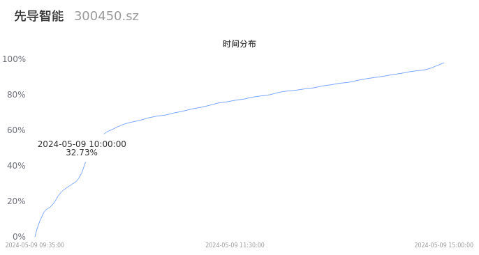 300450先导智能2024年05月09日成交32.65万手,成交金额7.35亿元,相较昨日放量9.35万手,换手率2.25%,成交清淡。