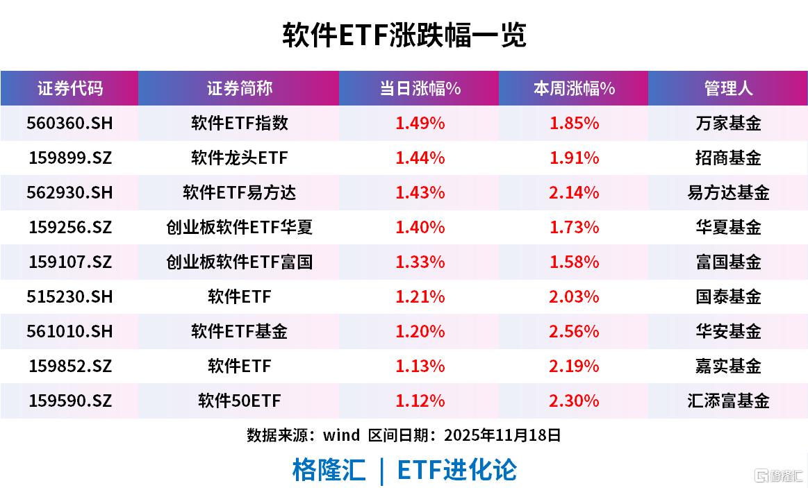 软件股逆势上涨,石基信息涨停,卫宁健康、三六零涨超3%,带动软件ETF指数、软件龙头ETF、软件ETF易方达、创业板软件ETF华夏、创业板软件ETF富国、软件ETF、软件ETF基金、软件50ETF上涨。