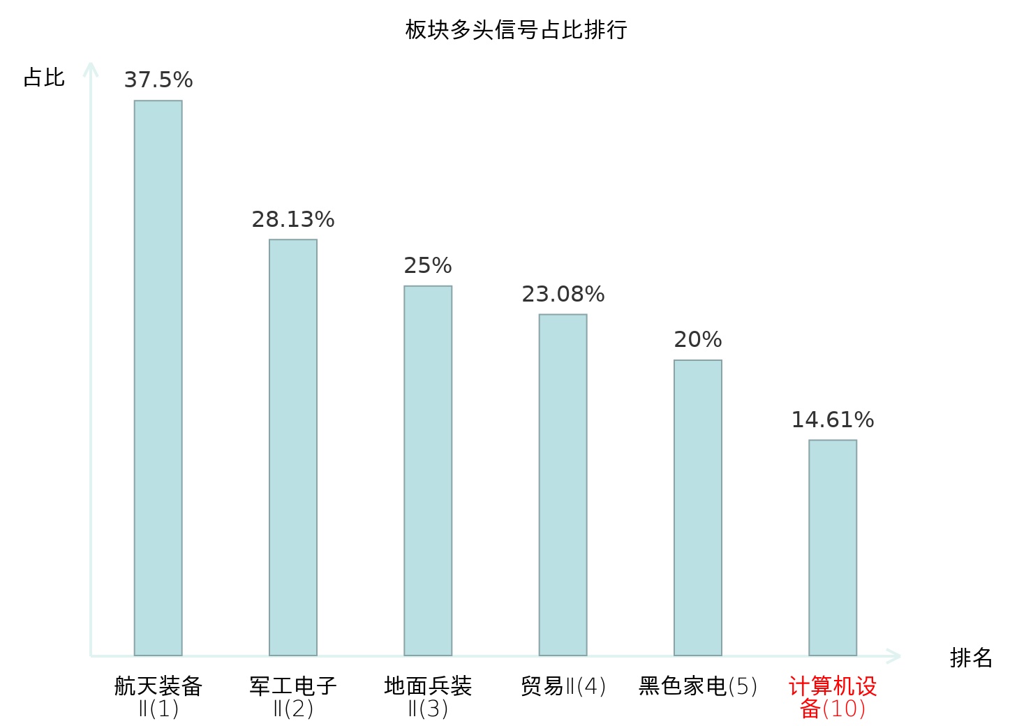 全市场所有行业板块中主力多头信号占比排名中,航天装备Ⅱ板块位居第一。航天装备Ⅱ板块名次提升最快,较昨日上升120位。