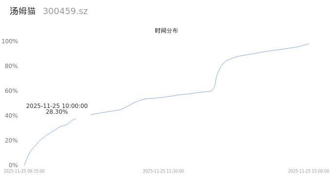 300459汤姆猫2025年11月25日成交501.33万手,成交金额26.60亿,相较昨日放量168.72万手,换手率15.25%,成交活跃。