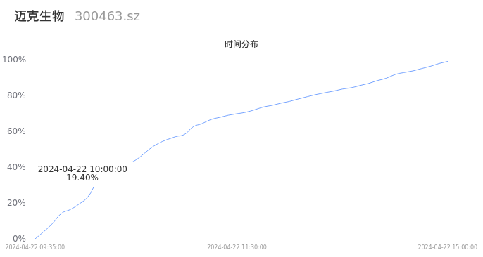 300463迈克生物2024年04月22日成交6.19万手,成交金额7353.28万元,相较昨日放量2.63万手,换手率1.25%,成交清淡。
