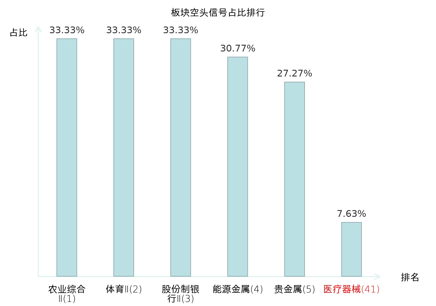 全市场所有行业板块中主力空头信号占比排名中,农业综合Ⅱ板块位居第一。出版板块名次提升最快,较昨日上升115位。