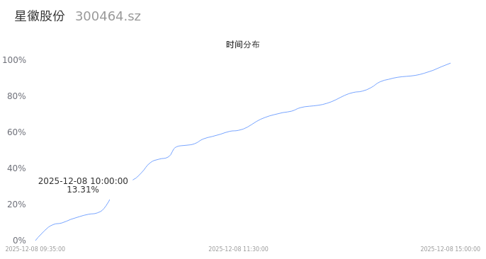 根据成交分布分析,该股票当天放量成交,成交清淡。时间上看,早盘前半小时成交量占据当天总成交量的13.31%;价格上看,成交呈现中间峰。成交分布分析主要研究股票成交的分布特性,不具有预测功能,请知悉。