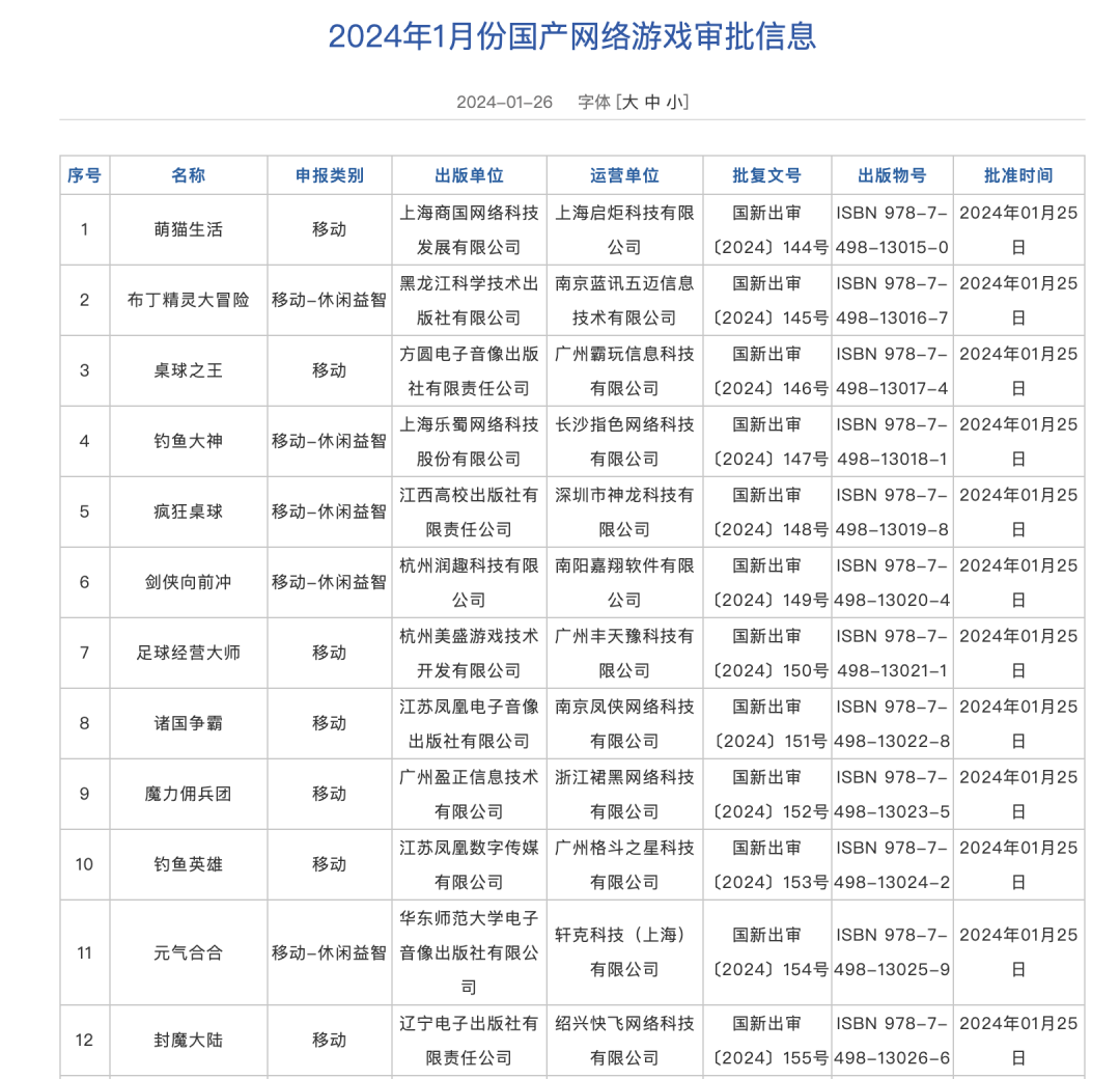 1月26日凌晨,游戏圈被新一批网络游戏版号信息刷屏了。