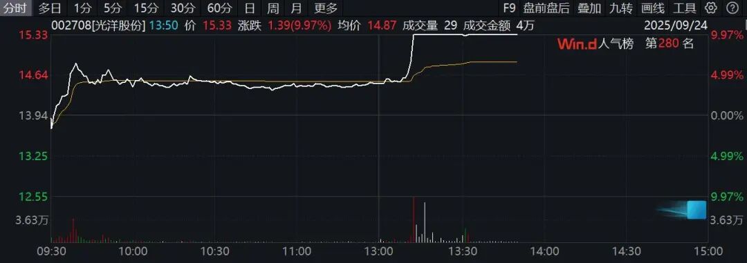 午后低空经济概念异动拉升,光洋股份直线涨停,深城交、莱斯信息、万丰奥威、英搏尔、中化岩土等跟涨。