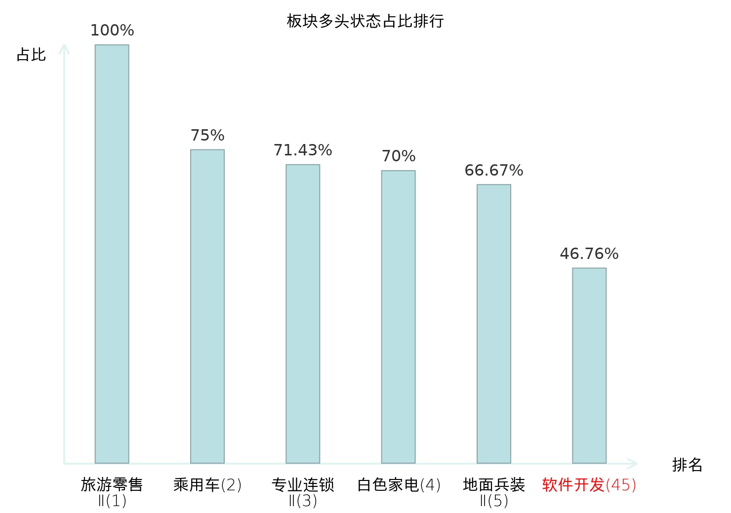 从主力宝信号数据分析,信息发展所属的软件开发板块中共有65只股票处于主力多头状态,主力多头状态占比在全行业中排名第45位,较昨日下降1位。排名较高表明主力对该板块整体看好,此次排名下降可能反映了主力态度的微调。全市场所有行业板块中,旅游零售Ⅱ板块的主力多头状态占比最高,位居第一;焦炭Ⅱ板块名次提升最快,较昨日上升105位。这些变动揭示了不同行业间主力资金动向的趋势,为投资者提供了重要的市场参考。