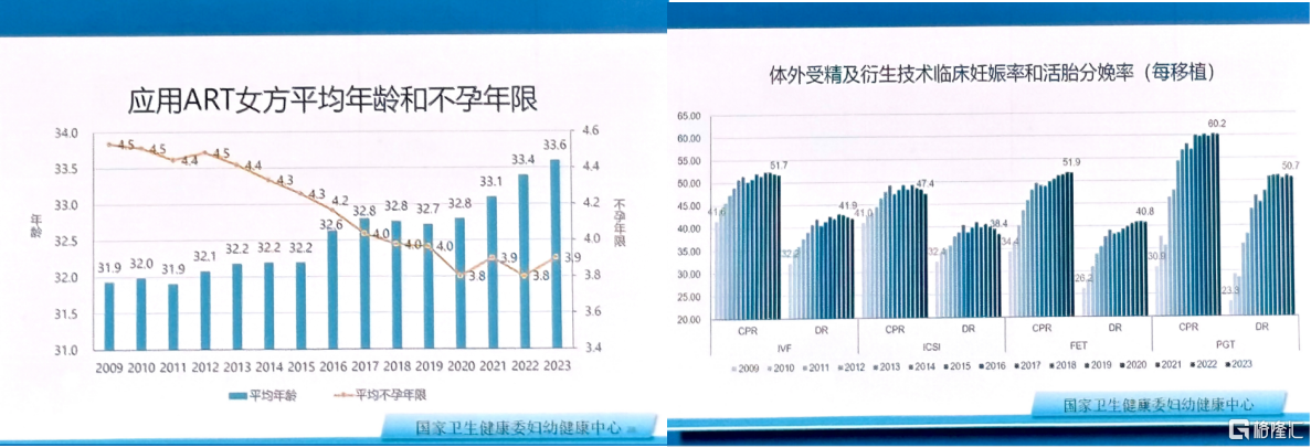 在此背景下,第三代试管婴儿(PGT)技术技术的价值愈发凸显,其2021年临床妊娠率(CPR)高达60.2,远超同期IVF(早期CPR:41.6)、ICSI(早期CPR:47.4)等技术的表现。PGT通过胚胎遗传学检测,有效规避了高龄导致的染色体异常风险,不仅大幅提升妊娠成功率,更在活胎分娩率(DR)维度为高龄患者提供了更可靠的生殖结局保障。这一趋势表明,伴随生育高龄化的发展,以PGT为代表的高龄化精准辅助生殖技术在市场中的需求将持续增长。