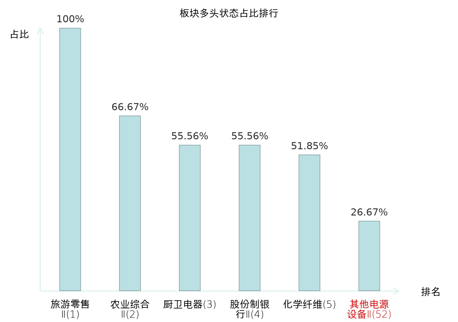 从主力宝信号数据分析,通合科技所属的其他电源设备Ⅱ板块中共8只股票处于主力多头状态,主力多头状态占比在全行业中排名第52位,较昨日上升39位。排名上升表明主力对板块整体看多意愿增强,为投资者提供了积极的市场信号。全市场所有行业板块中主力多头状态占比排名中,旅游零售Ⅱ板块位居第一。国有大型银行Ⅱ板块名次提升最快,较昨日上升103位。这些变动反映了不同行业间主力资金动向的趋势,为投资者提供了重要的市场参考信息。